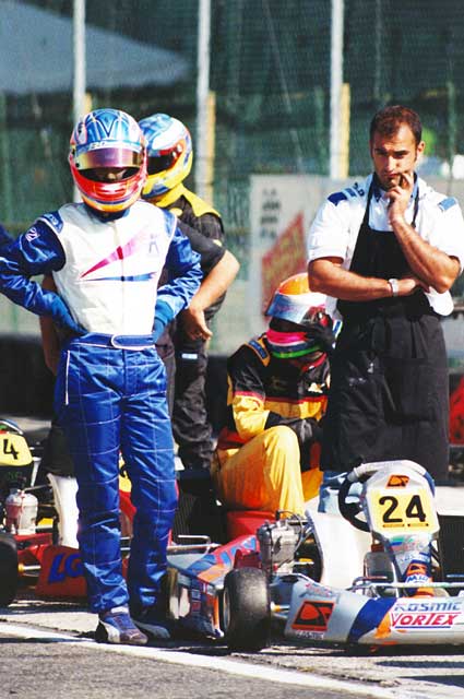 Un désastre, casse, mauvais matériel, méconnaissance des circuits, tout pour donner envie d'arrêter le kart. Nous avons décidé de tout changer et de partir en Italie. Première manche à Parme, Julie n'avait plus roulé depuis 2 mois. Le circuit est très difficile pour le pilote, beaucoup de gomme, il faut un bon entraînement pour participer à une course internationale sur ce circuit, ce qui n'était pas notre cas.
